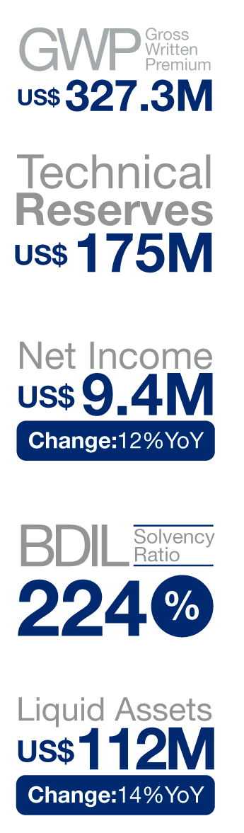 The BDI Group, which consists of BDIL and all other operating entities within the BDI Group of companies, closed the year with a Gross Written Premium of US$327.3 million, a healthy increase, reflecting the confidence placed in us by thousands of clients and brokers.
