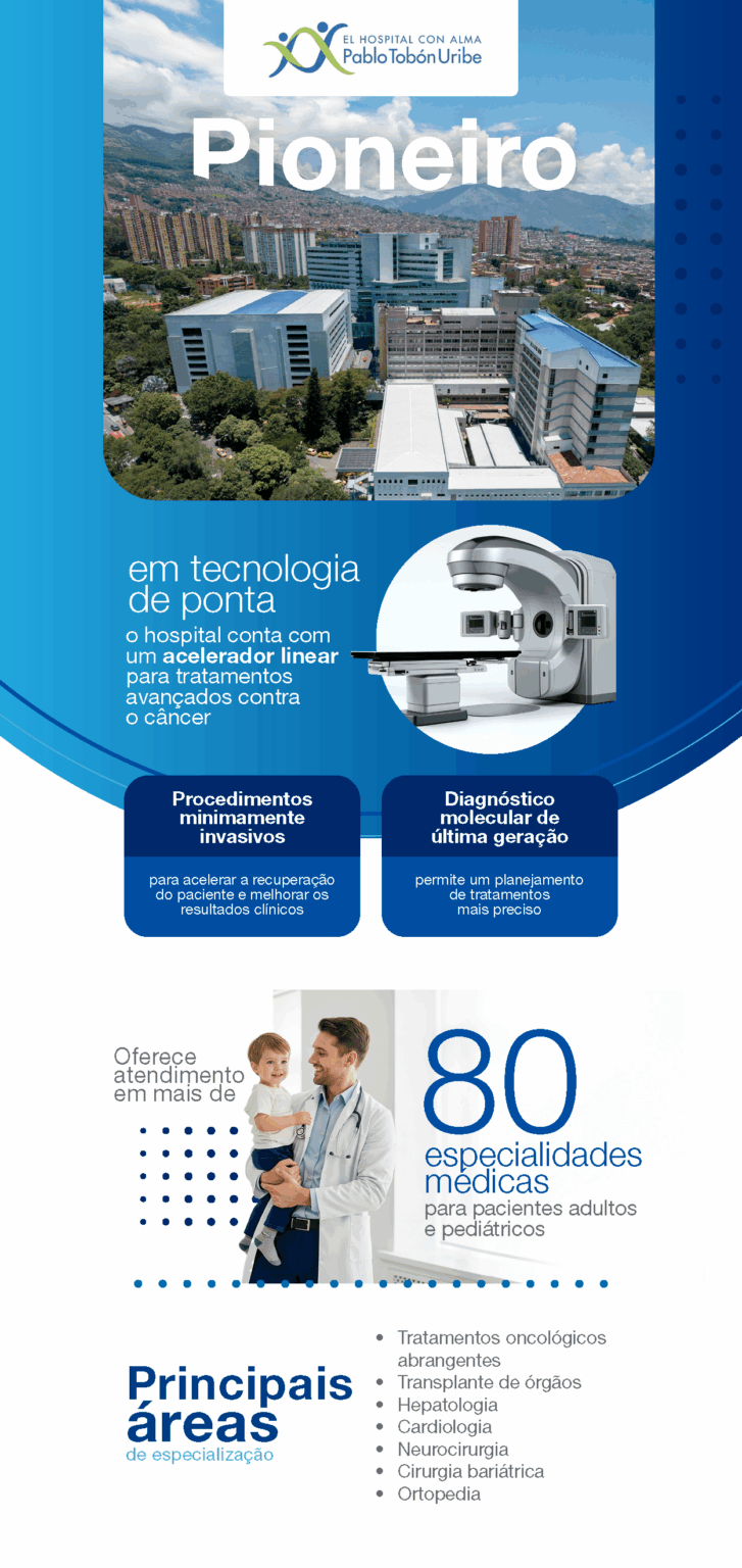O Hospital Pablo Tobón Uribe (HPTU), com sede na Colômbia, é um importante centro médico que oferece atendimento de alta complexidade, programas de formação acadêmica robustos e tecnologia de última geração a pacientes da América Latina e de todo o mundo.