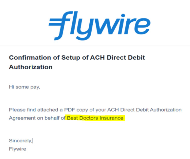 A continuación, se ilustra una notificación típica de autorización de pago directo a través de ACH: