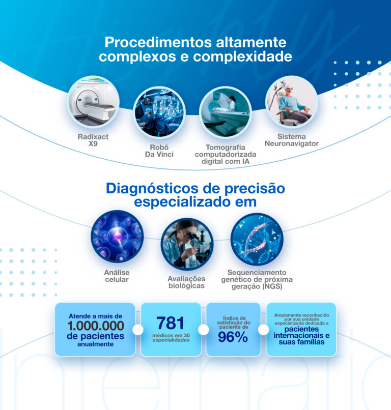 Classificado entre os 10 melhores hospitais da América Latina e entre os 250 melhores hospitais do mundo.